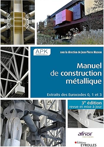 Manuel de construction métallique - APK , Jean-Pierre ~ Manuel de construction métallique Extraits des Eurocodes 0, 1 et 3 Jean-Pierre Muzeau, APK - Collection Eurocode. Donner votre avis. 258 pages, parution le 06/06/2019 (3 eme édition) Livre papier. 31,50 € Livre numérique. 21,99 € Expédié sous 24h. Livraison à partir de 0,01€ dès 15€ d'achats Pour une livraison en France métropolitaine. Retrait à la librairie - Paris 5e .